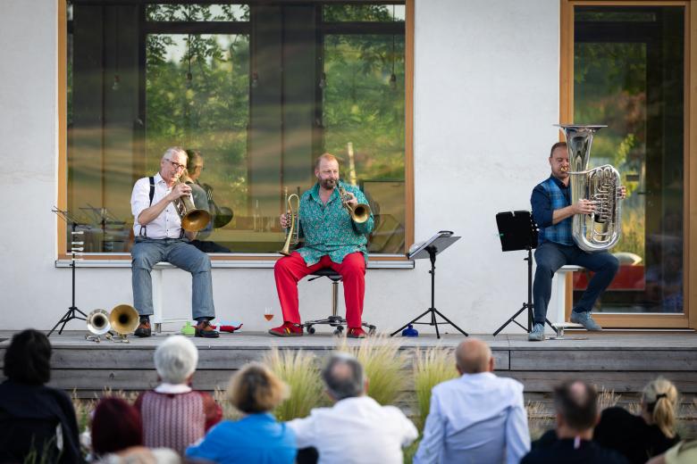 Die drei Musiker zählen zu den begnadetsten des Landes, und Thomas Gansch ist jedenfalls einer der weltbesten Trompeter. Dass er sich Zeit nimmt, nach Prellenkirchen zu kommen, kann nur dem intimen Konzept der „Konzerte in der Wiese“ zu verdanken sein.