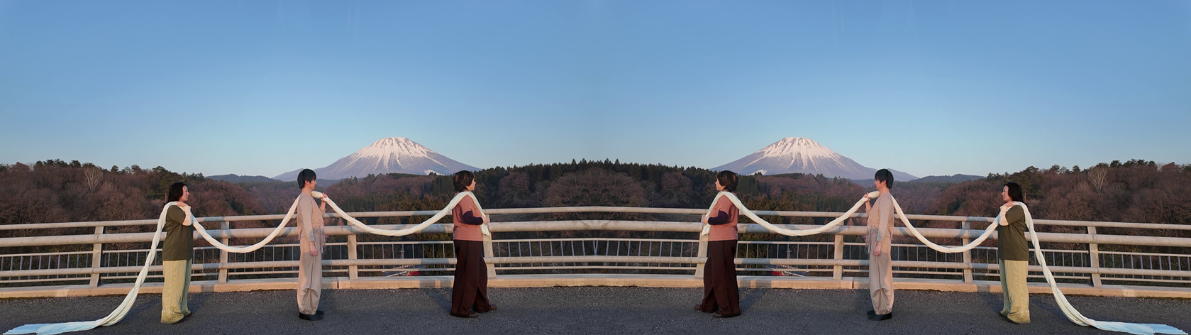 Das Kollektiv AMO — bestehend aus Aki Namba, Mary Maggic, Oi Pui Hoang — erkundet im Film „Cosmic Forest, Cosmic Home“ in der Landschaft von Okayama, Japan die porösen Beziehungen zwischen den Wirklichkeiten – das Sichtbare und das Unsichtbare, das Vergangene und das Gegenwärtige, der Körper und das Land, das Land und die Zugehörigkeit. Die Erkundung nimmt Bezug auf Traditionen des Shinto, Buddhismus und Animismus, in denen das Bewusstsein und eine Verbindung zur Natur verkörpert sind. Das sind Traditionen, die in einer kapitalistischen Zeit zunehmend verblassen.