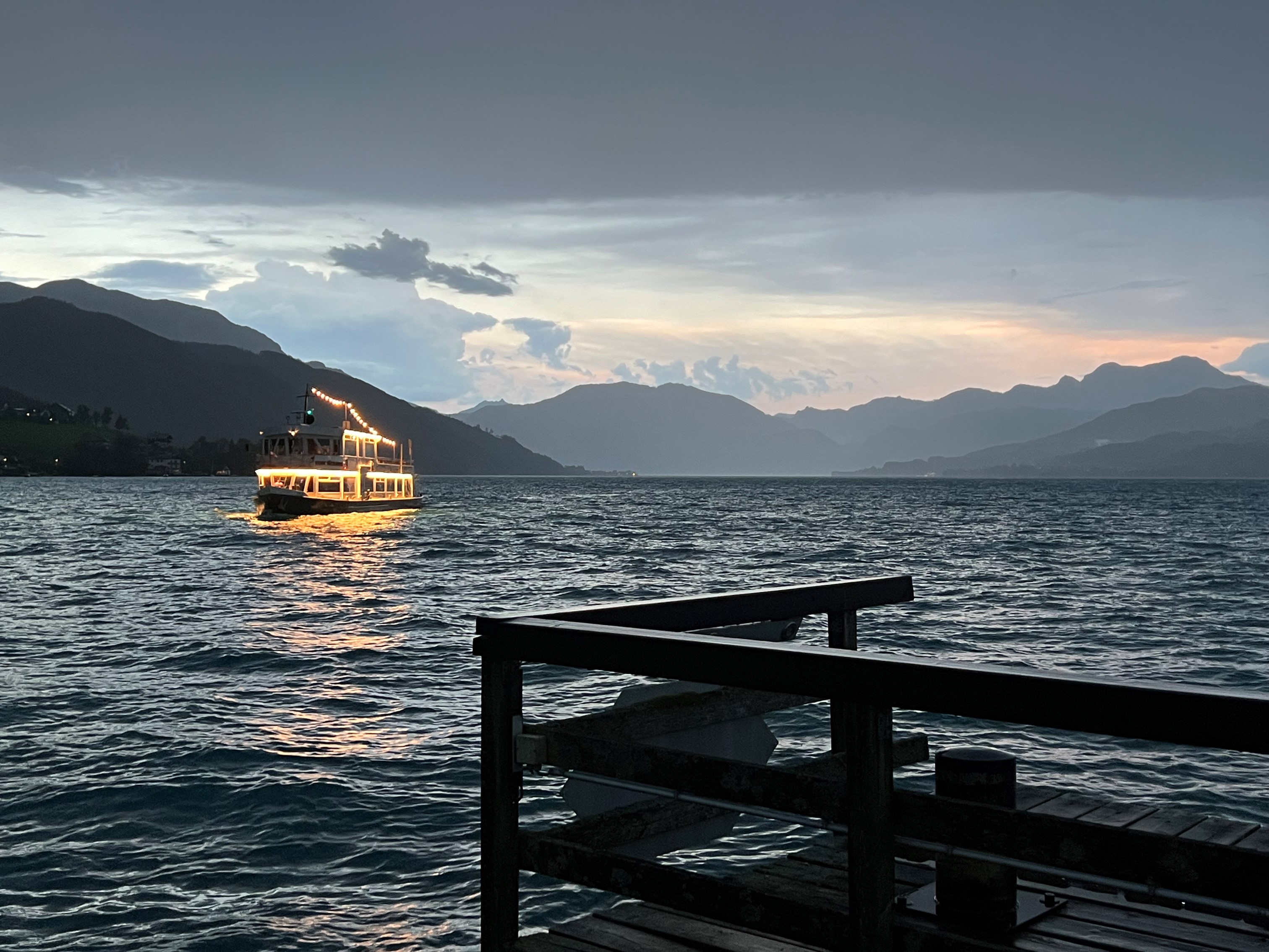Stimmungsvolle Lichter, der Duft von Glühwein und leise Weihnachtsmusik begleiten die Adventschifffahrt auf dem Attersee. Ein kleines Adventmärktchen an Bord und liebevolle Details machen dieses Erlebnis zu einem der romantischsten im Salzkammergut.