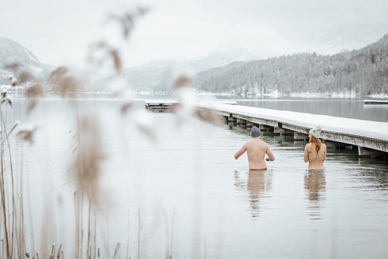 Wer sich traut, taucht ein: In den Seen des Salzkammerguts weckt das Winterbaden Körper und Geist. Die Kombination aus klirrender Kälte, klarem Wasser und wärmendem Tee danach ist intensiver als jede Wellnesskur.