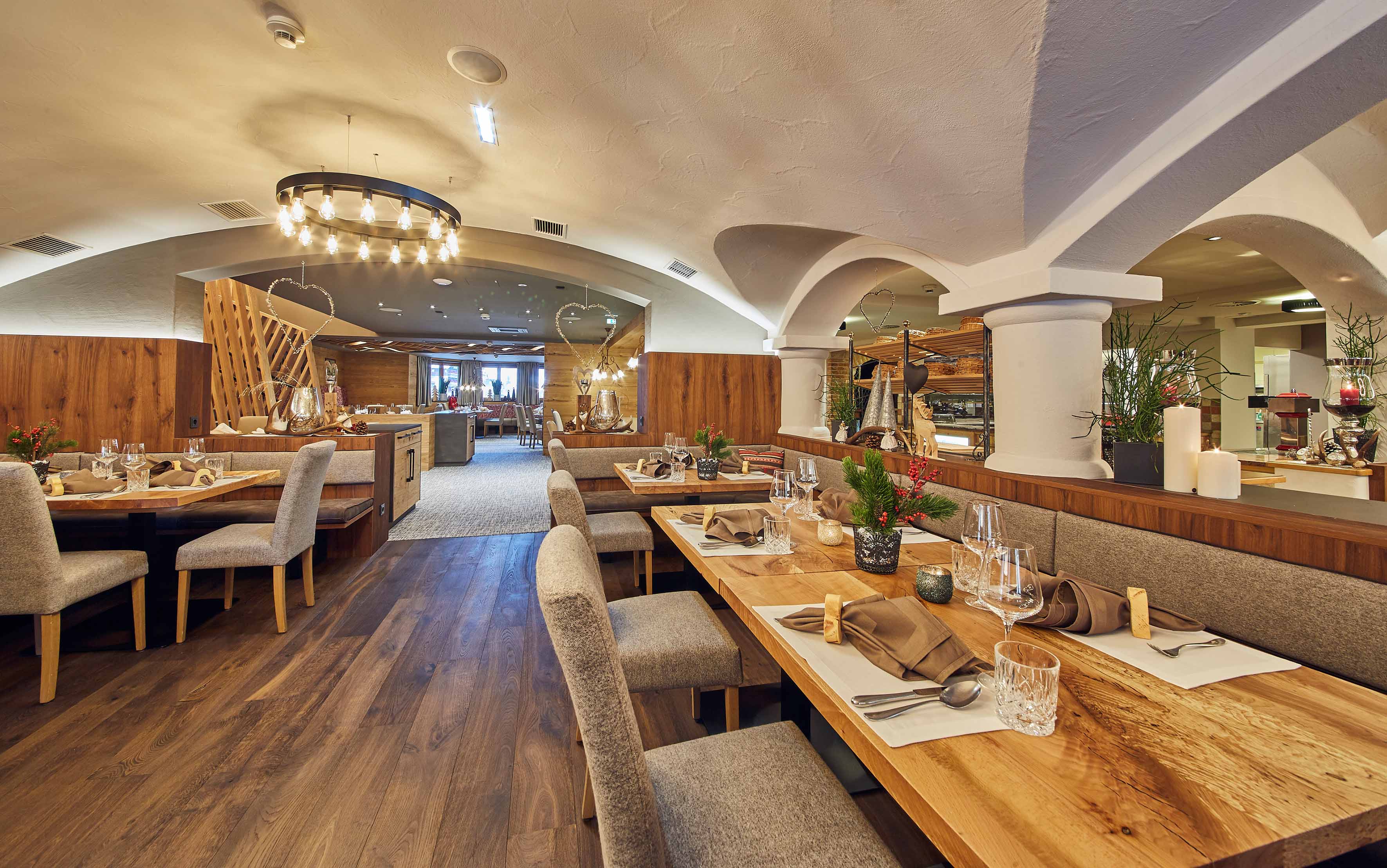 Wo der Winter direkt vor der Tür beginnt. Ski anschnallen, rein in den Lift und rauf auf die Piste: Nur wenige Meter vom Hotel Hasenauer entfernt, wartet der Skicircus Saalbach Hinterglemm Leogang Fieberbrunn mit 70 Liften und 270 Pistenkilometern: Buckelpisten, Speed- und Rennstrecken, Funparks und Tiefschneeabfahrten. Den Sternen besonders nahe sind Snowies beim Nachtskifahren und Rodeln im Flutlicht. Neue Suiten und ein feiner Restaurant- und Barbereich sorgen seit dem letzten Umbau für noch mehr Style und Wohlbefinden. Nach einem sportlichen Tag folgt Wellness pur in der Rooftop-Relax-Area. Alpine Kulinarik, aber immer einen Blick über den Tellerrand, ist die Devise des Chefkochs.