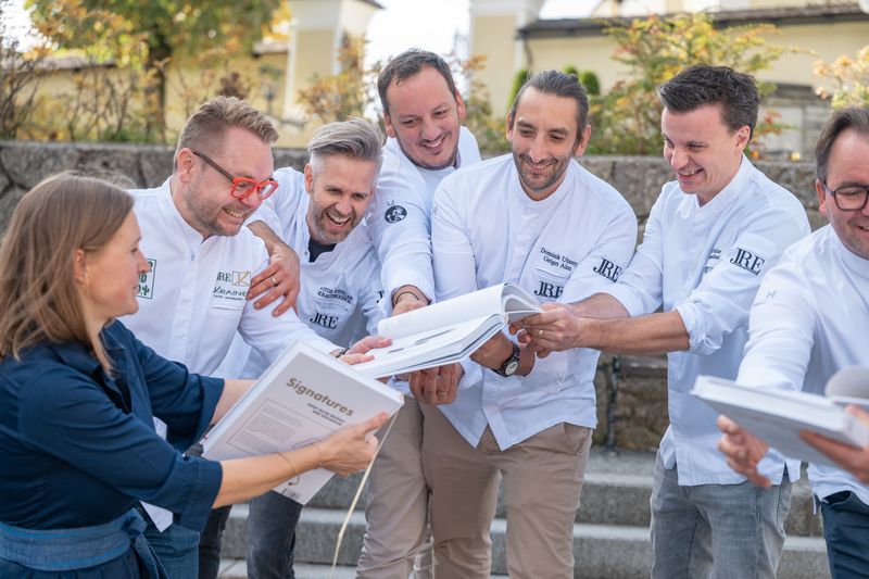 JRE-Buchpräsentation: Die Köche von JRE Österreich überzeugen nicht nur mit herausragendem Geschmack, sondern auch mit ihren Geschichten. Das verbinden sie in ihrem neuen Buch „Signatures“: Persönlichkeiten und ihre Gerichte.