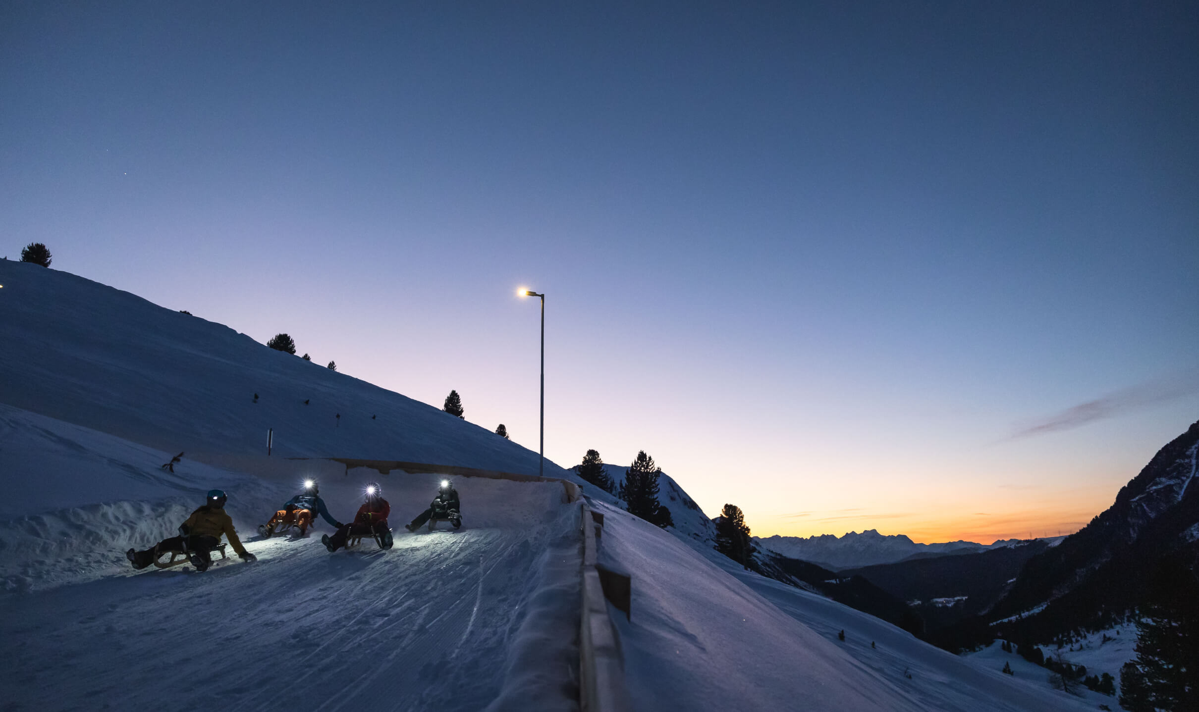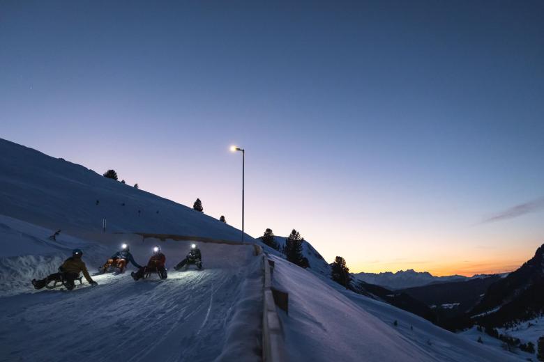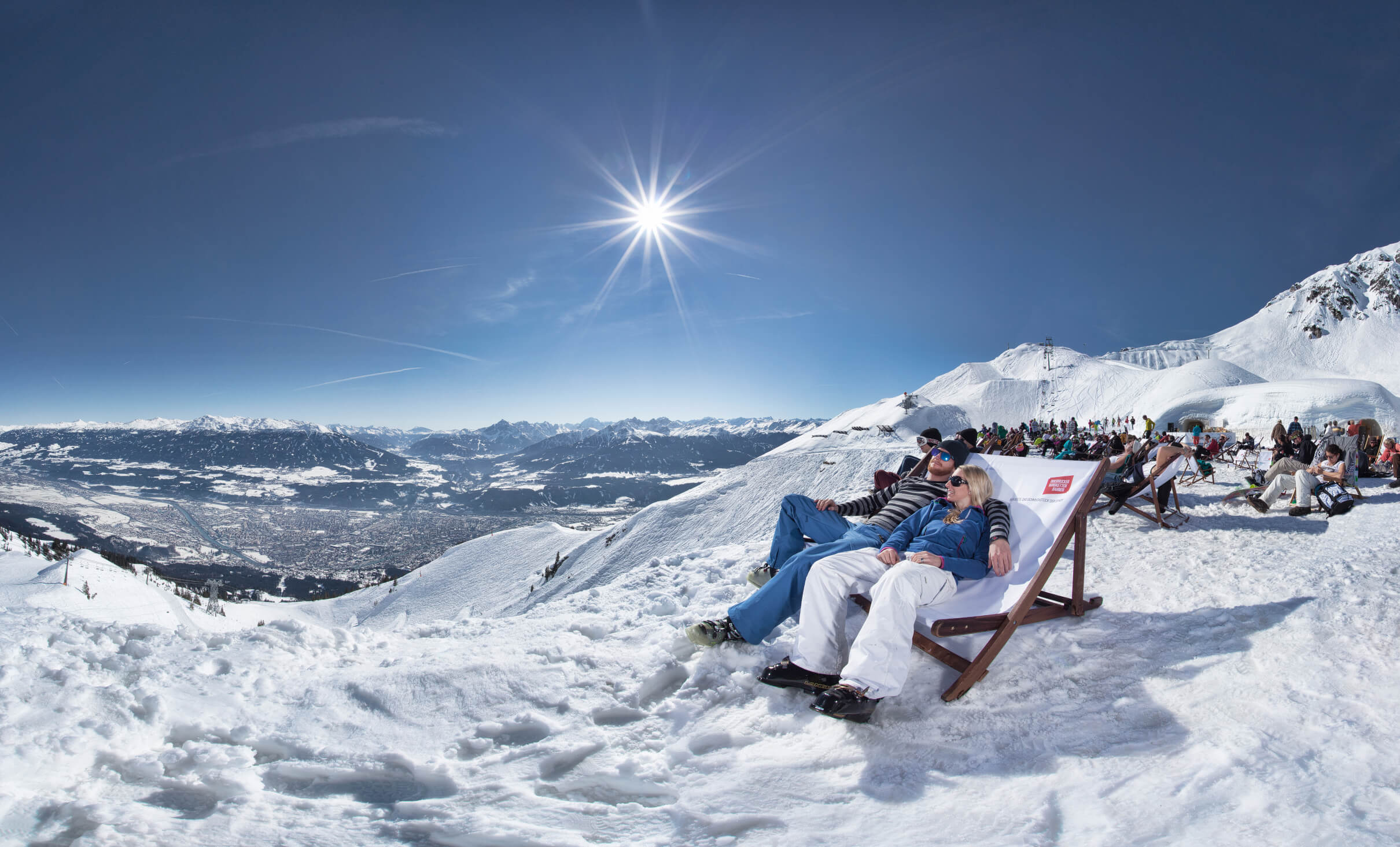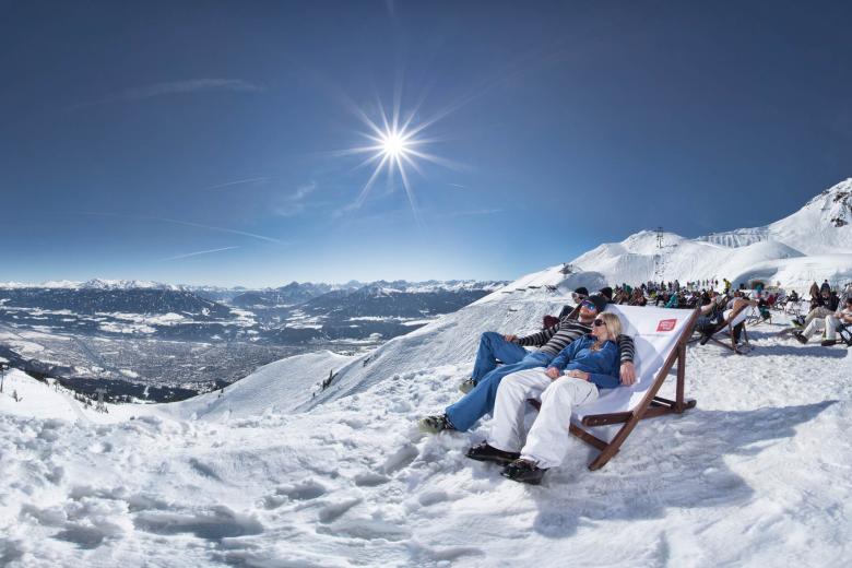 Rodelpartien in der Region: Als eine der längsten und abwechslungsreichsten der Region schlängelt sich die Rodelbahn am Rangger Köpfl über acht Kilometer und drei Teilstrecken ins Tal. Sie ist bequem per Bergbahn erreichbar, was für jede:n – egal ob jung oder alt, sportlich oder gemütlich – eine vergnügliche Rodelpartie garantiert. Hoch hinaus geht es ebenso in Kühtai: Tirols höchstgelegene Rodelbahn führt hinauf auf 2.020 Meter zum Graf-Ferdinand-Haus, wo man sich in gemütlicher Atmosphäre stärken kann. Beide Bahnen sind übrigens auch beleuchtet: Am Rangger Köpfl sorgt das Nachtrodeln je nach Schneelage zweimal wöchentlich für Momente, an die man sich gerne erinnert, in Kühtai sogar täglich. Sonne tanken, Höhenluft schnuppern: durchatmen auf der Seegrube Der einmalige Charakter der Region zeigt sich auf der Seegrube auf eindrucksvolle Weise: In weniger als 30 Minuten gelangt man vom Innsbrucker Stadtzentrum auf 1.905 Meter Höhe, wo sich ein atemberaubender Blick auf die alpin-urbane Kulisse eröffnet. Hier schwebt man wahrlich auf Wolke neun – genauer gesagt auf der Cloud 9, die Bar mit einmaliger Sonnenterrasse, wo man coole Drinks in einer der Liegen genießt.